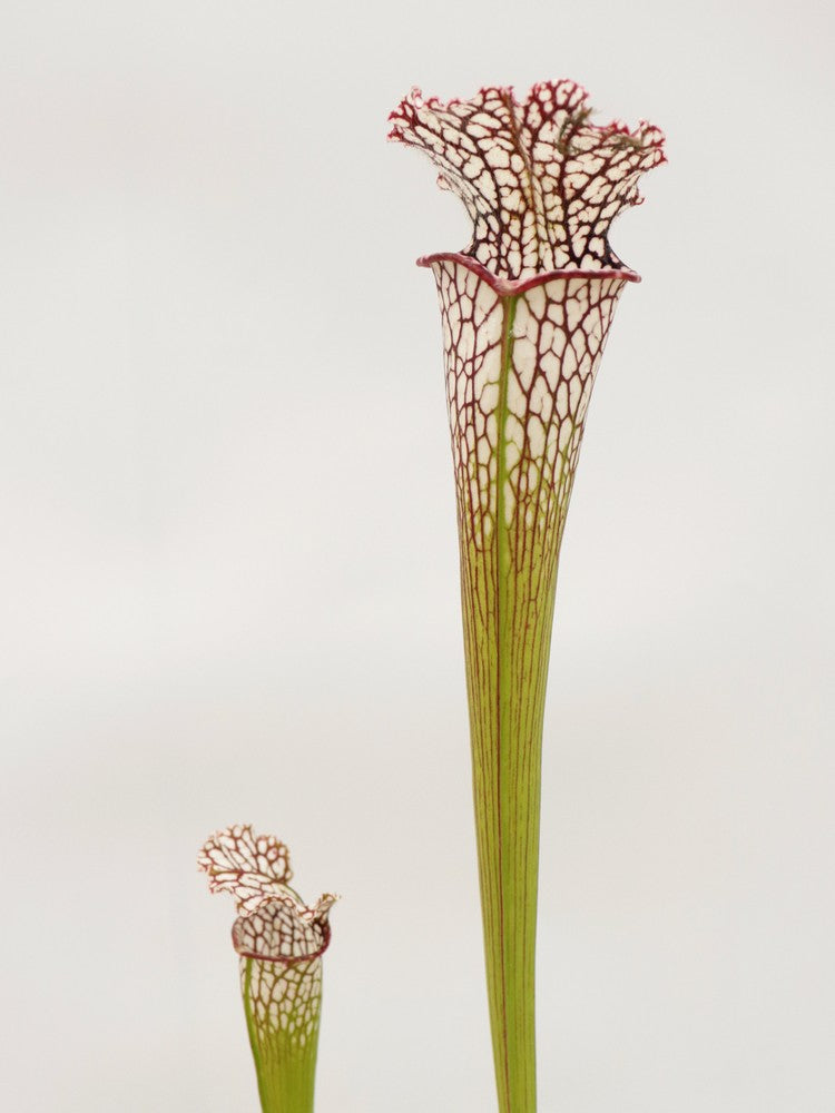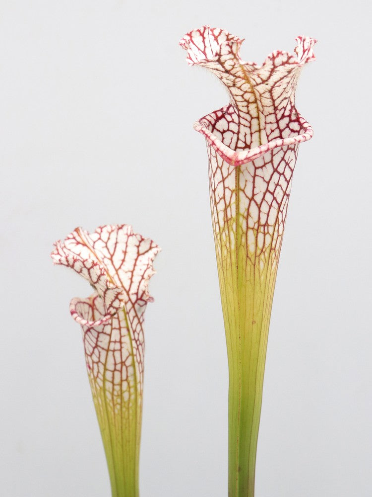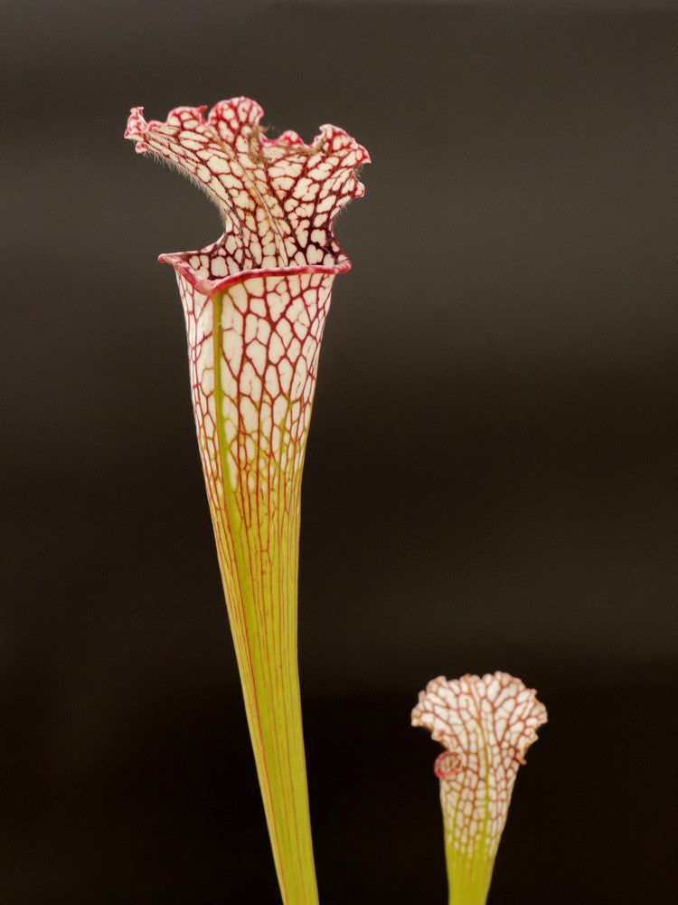 Produce degli ascidi snelli e bulbosi solo nella parte superiore. Il loro colore è bianco spesso adornato da venature verdi, viola o talvolta sono assenti come nelle varietà alba.