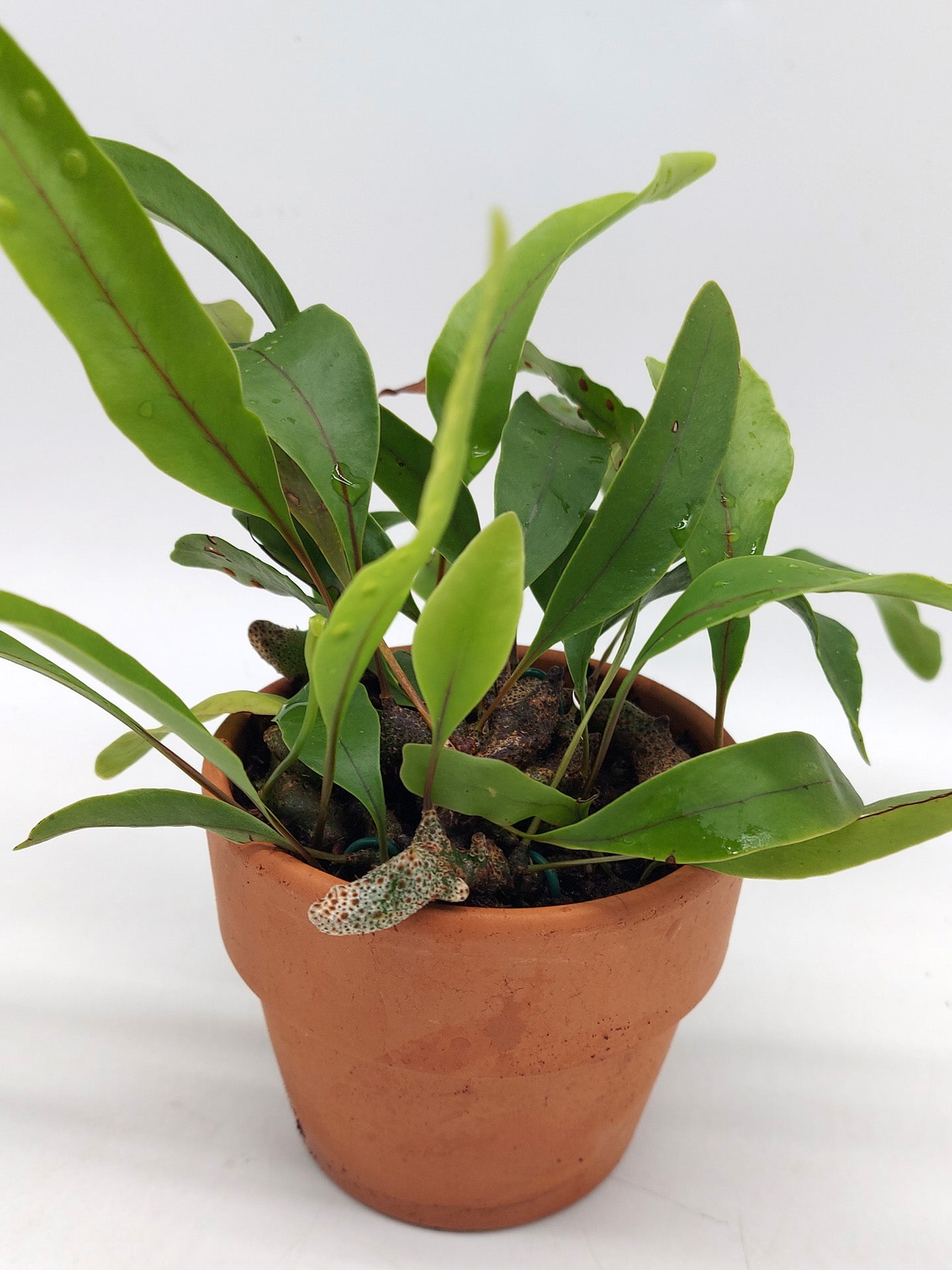 Felce preistorica che ama alta umidità e luce diffusa, mai diretta. La pianta cresce su un vaso di terracotta da dove assorbe umidità.